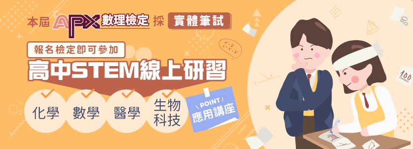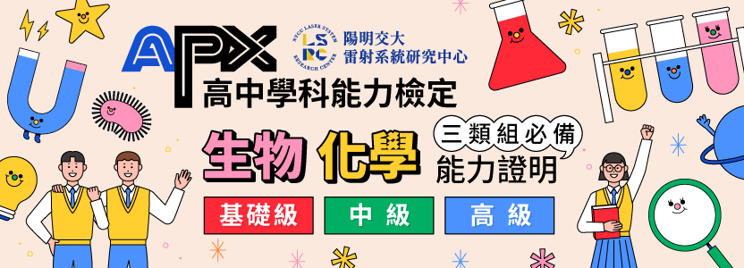 2. 報名完成的應考生(不限科目數),登入APX網站,可參加 APL(Advanced Placement Learning)全國高中數理檢定線上練習,可作為題型及命題趨勢準備參考。以及可免費參加實體(或線上)陽明交大科普系列講座。