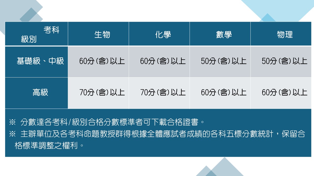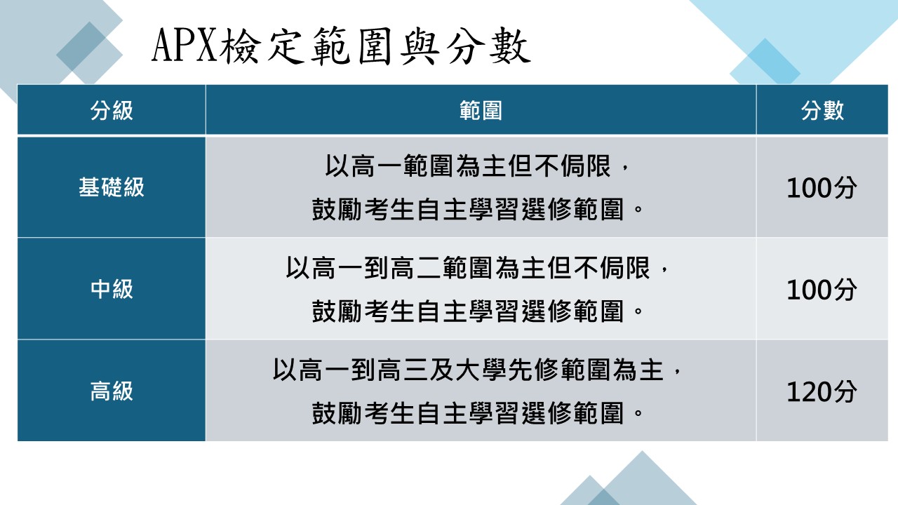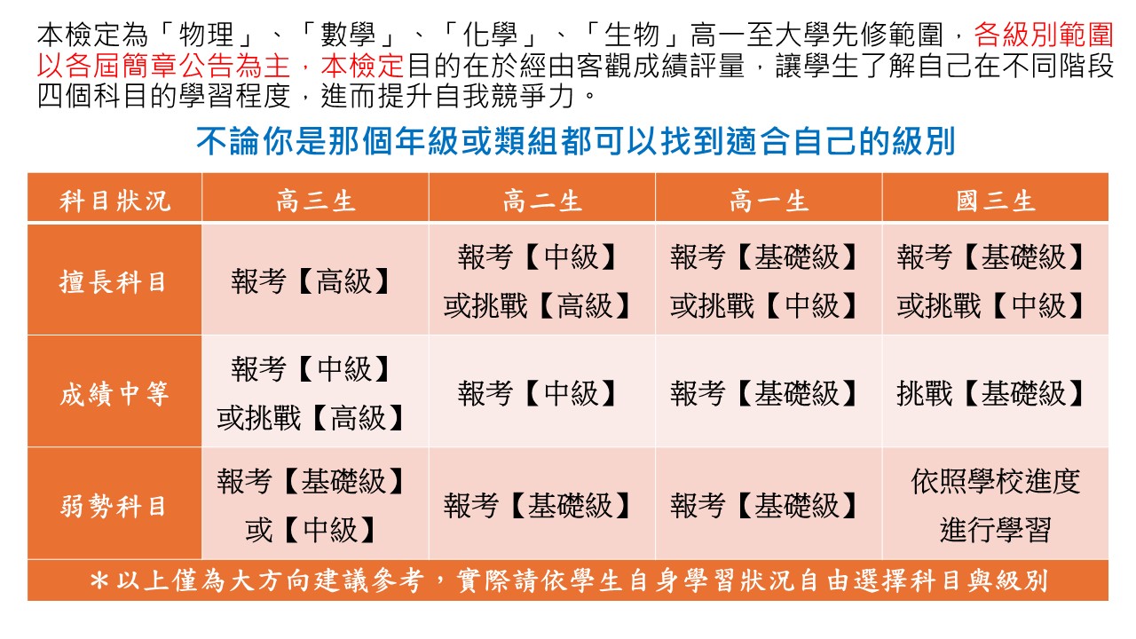 「基礎級」:以高一範圍為主但不侷限,鼓勵考生自主學習選修範圍。